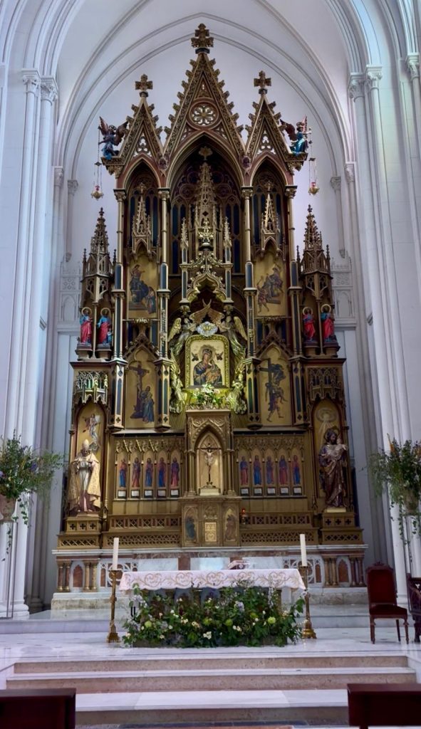 Había surgido, al menos en parte, como reacción contra el purismo reinante hasta entonces y con un sentido de austeridad. Fue el que escogieron los Redentoristas para la iglesia de su casa central en Roma (1855-1859) siguiendo los planos del arquitecto inglés George J. Wigley, que acentuaba el primer neogótico nórdico. En esa iglesia fue donde tuvo lugar la instauración del culto a Ntra. Sra. del Perpetuo Socorro el 26 de abril de 1866. Quizá por eso llegó a ser el neogótico un estilo redentorista en la segunda mitad del siglo XIX. Se debió al “arquitecto de Ntra. Sra. del Perpetuo Socorro”.