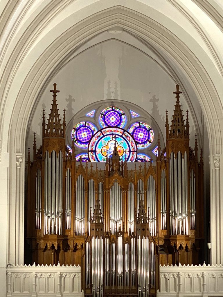 En 1903 se instala el órgano, un Merklin de estilo romántico francés, que había obtenido el “Grand-Prix” en la Exposición Universal de París de 1900. Es un instrumento musical de grandes recursos técnicos, con 25 de registros, tres teclados de mano, un pedalier de 30 notas, 10 pedales de acoplamiento, sistema pneumático-tubular y motor eléctrico. Entre sus características destaca la sonoridad de los juegos mordentes y de fondo, unidos a la redondez de la trompetería francesa. El mueble es de estilo neogótico, tallado en madera de roble.
