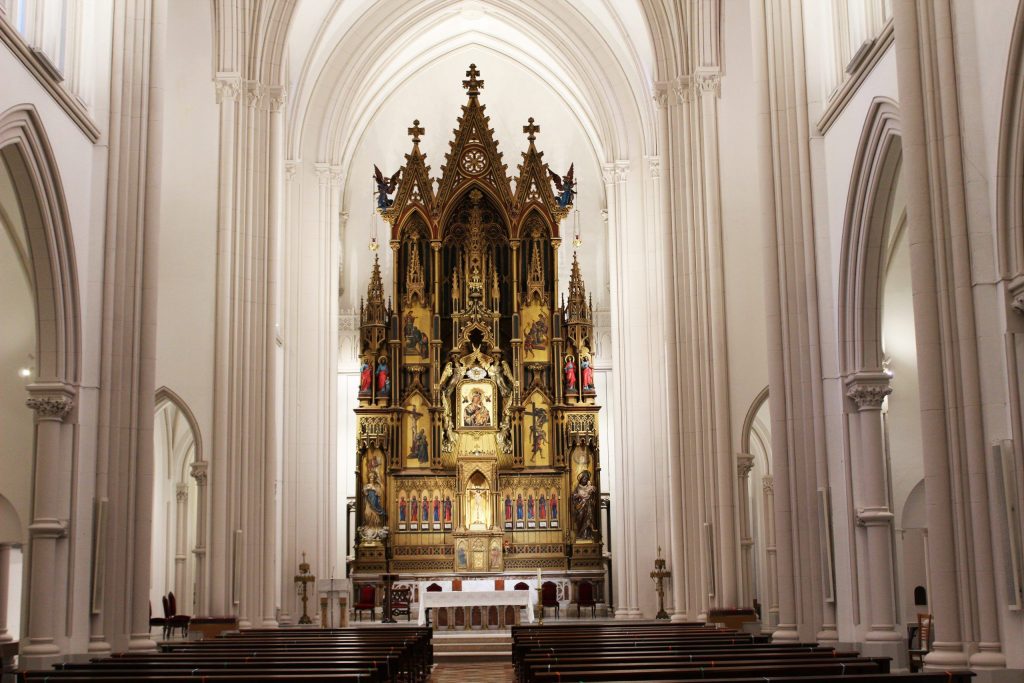 A quien visite el Santuario le invitamos a detenerse nada más entrar. Déjese empapar por la luz que viene de las vidrieras o por la penumbra que se ha ido formando bajo las bóvedas y comience a contemplar.